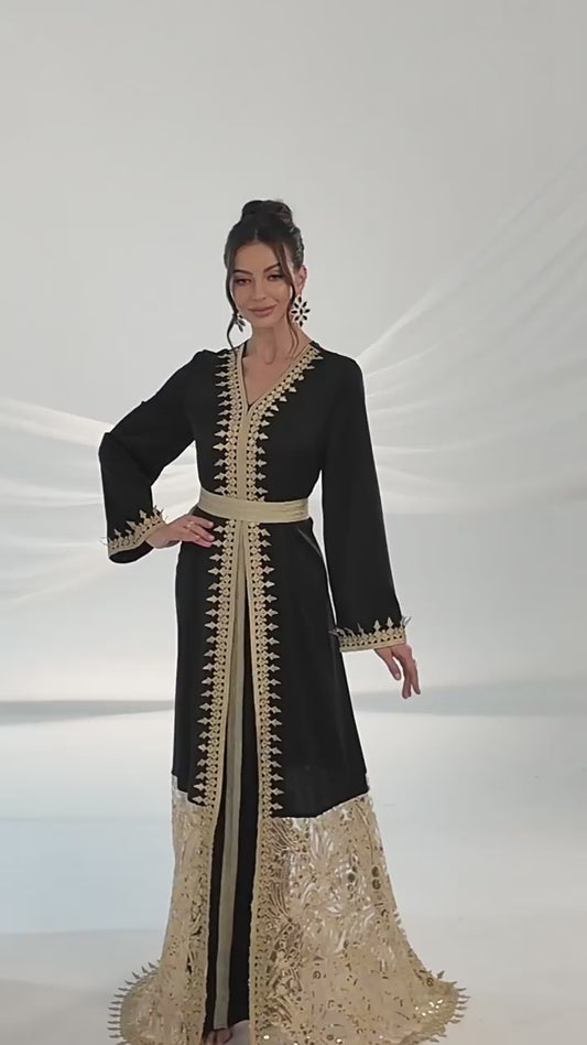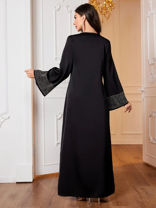 Black Elegant Embroidered Abaya Maxi Dress