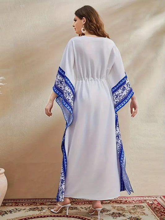 Elegant Graphic Print Maxi Kaftan Abaya Dress