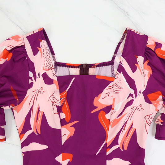 Floral Puff Sleeve Maxi Dress with Square Neck