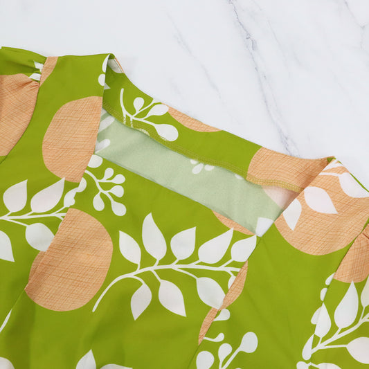 Elegant Printed Maxi Dress with Square Collar & Puff Sleeves
