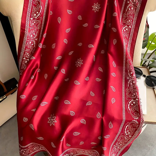 Classic Paisley Print Satin Shawl, Elegant