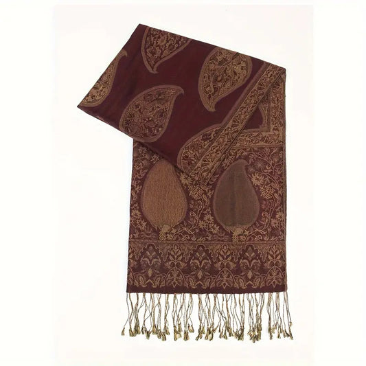 Luxury Paisley Jacquard Tassel Scarf, Vintage Classic