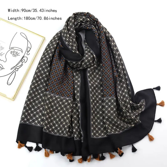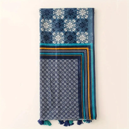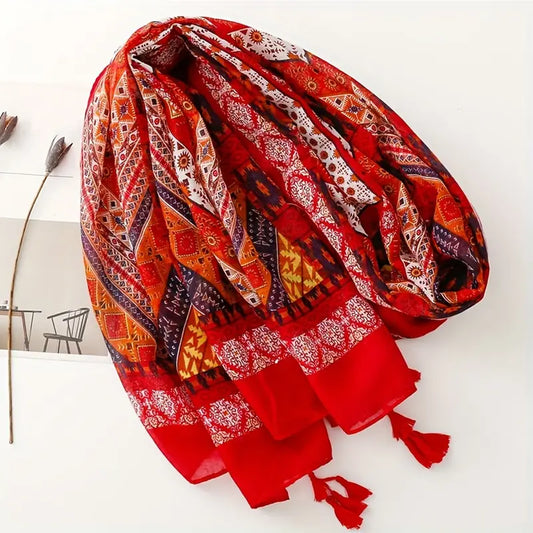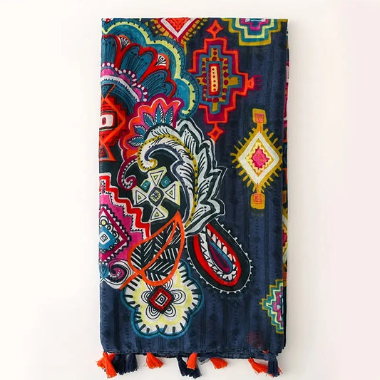 Colorful Boho Printed Scarf with Tassel Shawl