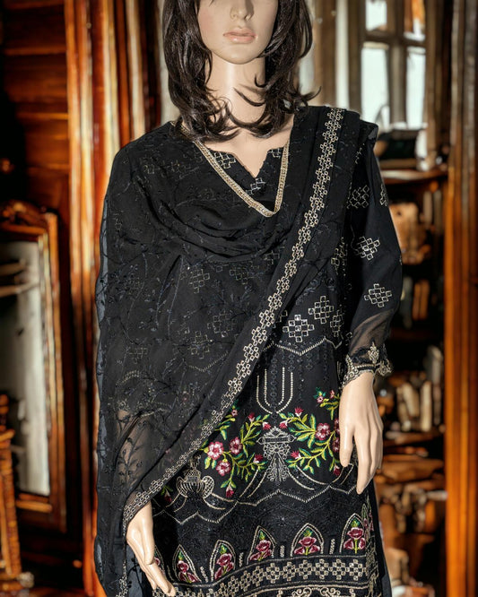 Boho Geometric Tribal Embroidered Black Maxi Dress