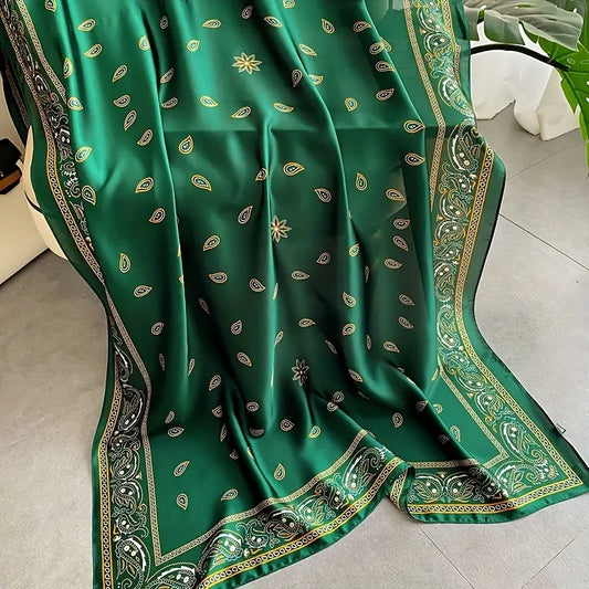 Green Paisley Print Satin Shawl, Elegant