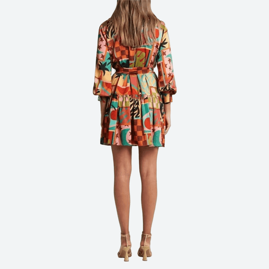 Long Sleeve Elastic Waist Square Collar A- line Dress
