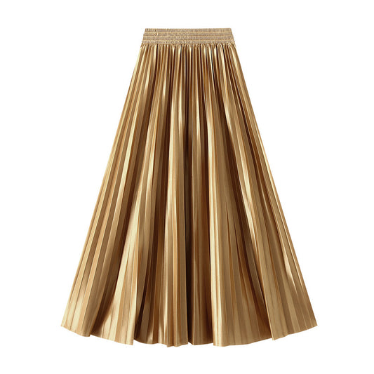 Glossy High-Waist Pleated A-Line Skirt