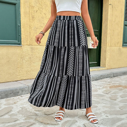 Bohemian High-Waist Swing Skirt