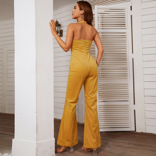 One-Piece Sleeveless Solid Color Jumpsuit