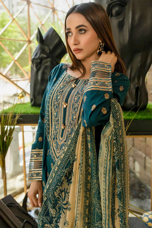 Stitched 3 Piece Paste Printed Khaddar Suit