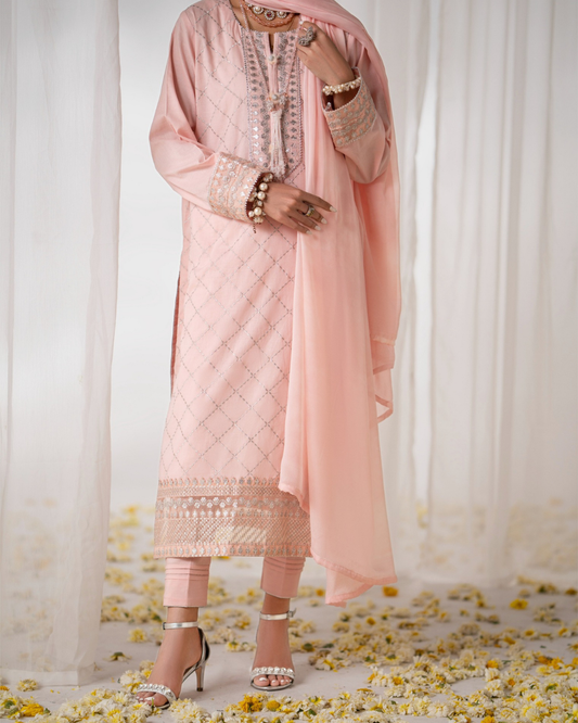 3 Piece Sequin Embroidered Lawn Suit (Pret)