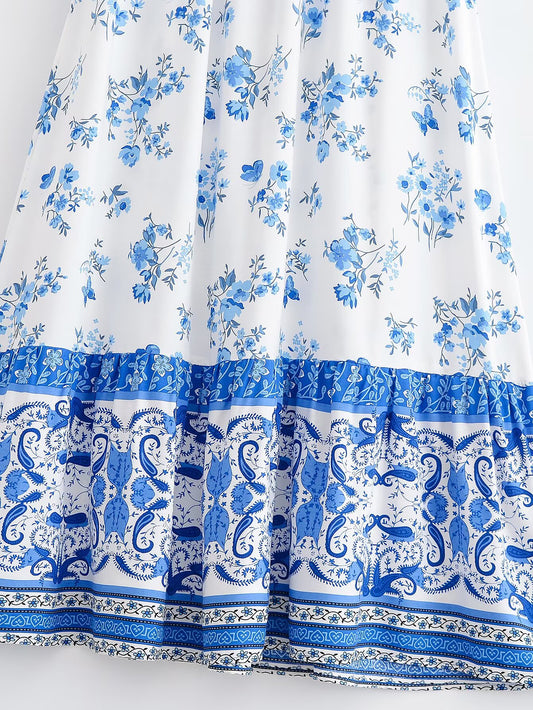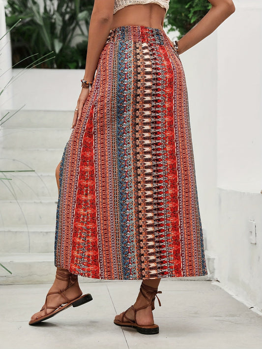 Elegant Boho Printed High-Rise Maxi Swing Skirt