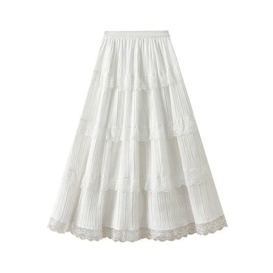 Lace Mesh Patchwork Tiered Ruffle Maxi Skirt