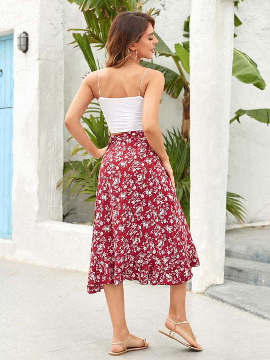 SOLD OUTFloral Print Lace-up Summer Skirt