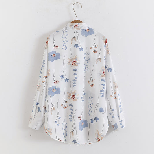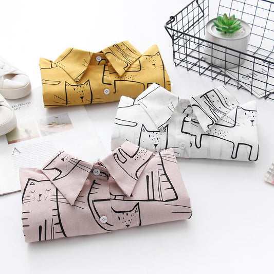 Retro Cat Pattern Long Sleeve Casual Shirt