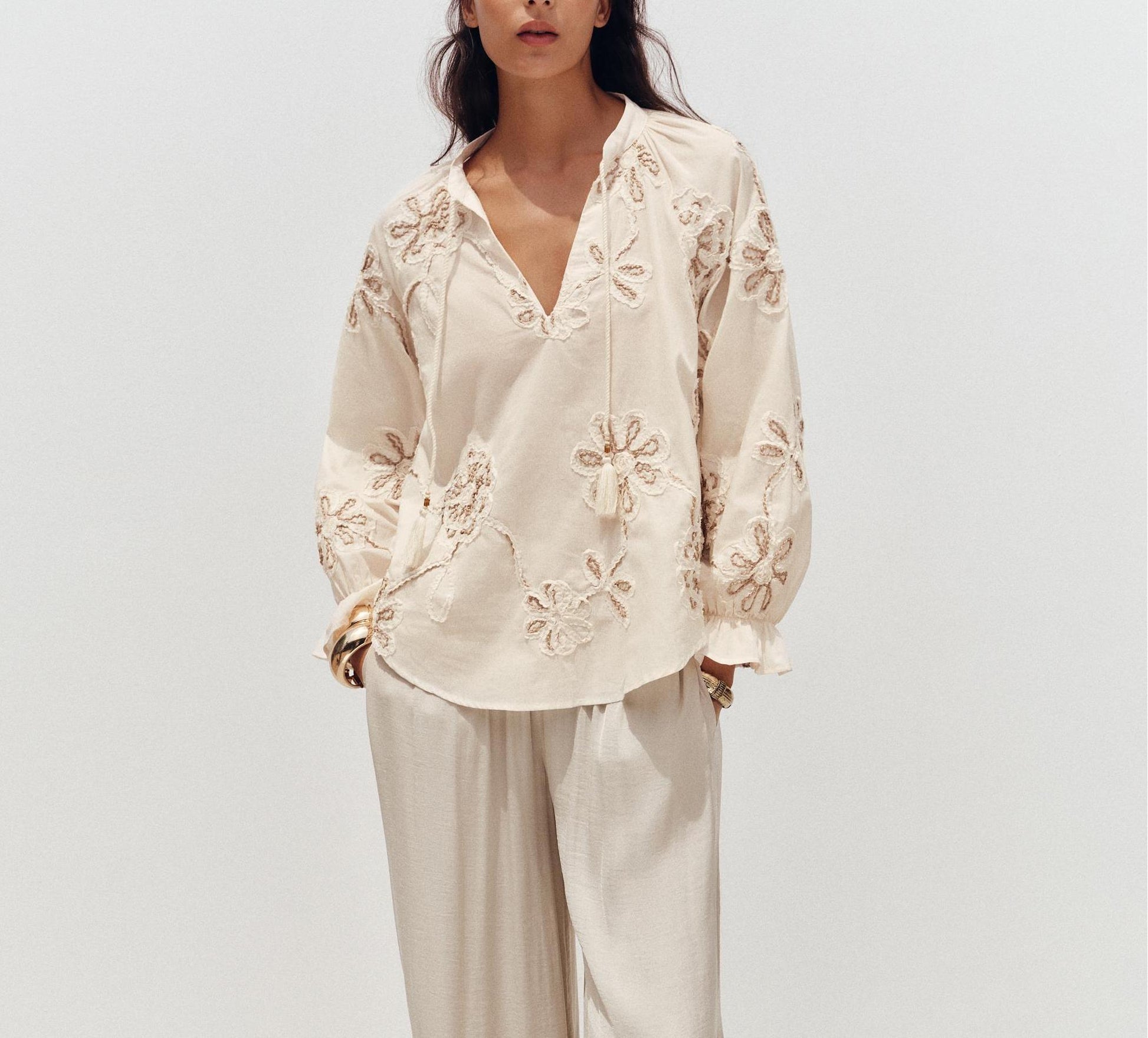 Elevate your wardrobe with the floral mini shirt for women from Malbusaat. This shirt gives a fresh look every time you wear it. The design features delicate floral embroidery that stands out softly. Lightweight fabric feels gentle on the skin all day. It suits both casual outings and relaxed gatherings.