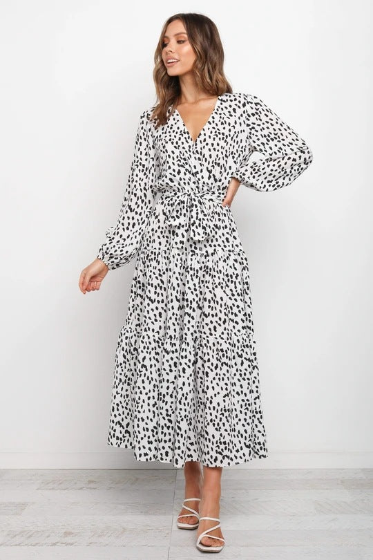 This dress is a casual and versatile piece. The dress features pleating, which is making this dress chic. The dress has a loose fit, with a long sleeve and lace up. This dress can be worn on many occasions, and is a staple in any wardrobe.