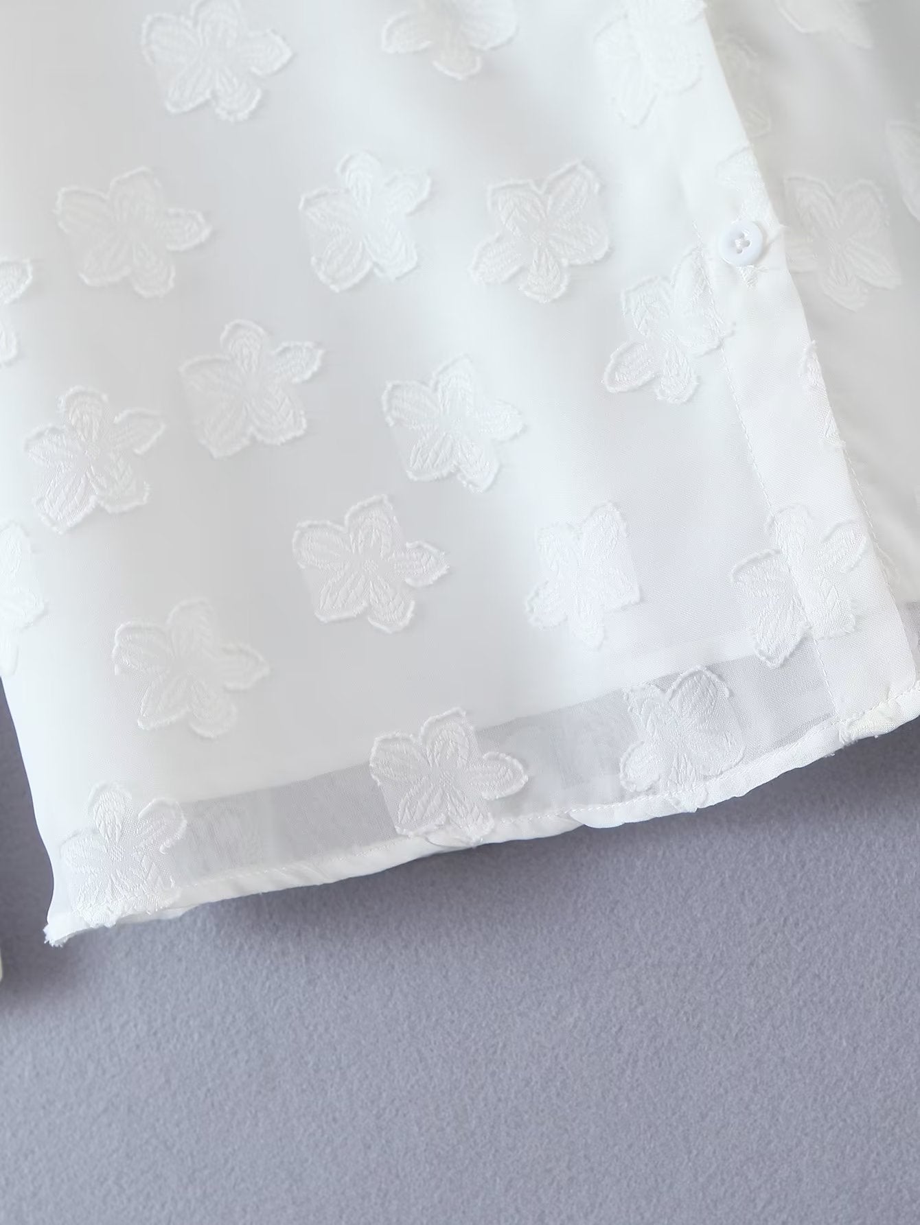 This sweet floral chiffon shirt is perfect for a day of shopping or a night out with the girls. The fit is feminine and the material is light and soft.